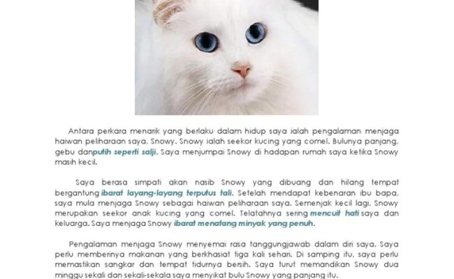Antara haiwan peliharaan kesayangan saya ialah kucingnama kucing saya ialah herokucing saya merupakan kucing daripada baka parsijiran saya yang memberikan kucing itukucing saya ialah seekor kucing jantankucing saya berusia dalam lingkungan 2 tahunbulu kucing saya berwarna hitam bercampuran putih dan panjangbulu kucing saya sangat lebat dan. Contoh Karangan Narasi tentang Lingkungan 4. Nah cerita pendek tentang kucing di atas bisa Kamu jadikan contoh untuk membuat karangan hewan peliharaan ya.